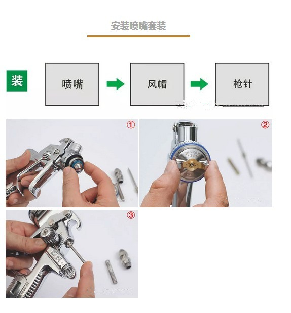 § 請使用原裝工具安裝、拆卸噴槍配件。